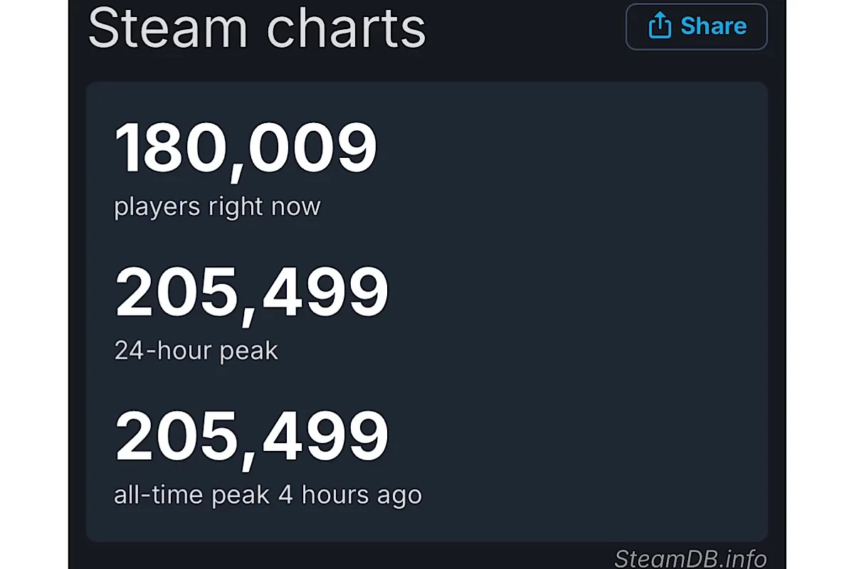 На момент написания новости в игре находилось более 180 тысяч геймеров. Это позволило игре расположиться на третьей строчке чарта платформы, обогнав Marvel Rivals, Schedule I, Baldurʼs Gate 3 и другие популярные игры.