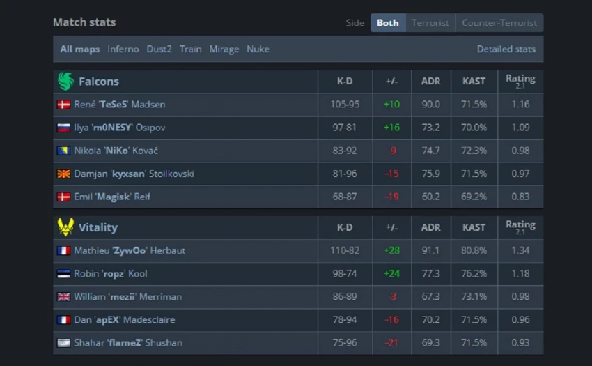 В противостоянии между Falcons и Vitality в финале есть определённая символичность. Оба коллектива уже встречались на турнире, однако Vitality одержала победу и выбила конкурентов в нижнюю сетку. Несмотря на трудности, Falcons собралась с силами и добралась до гранд-финала, победив GamerLegion. К этому бою в Vitality оказались готовы.