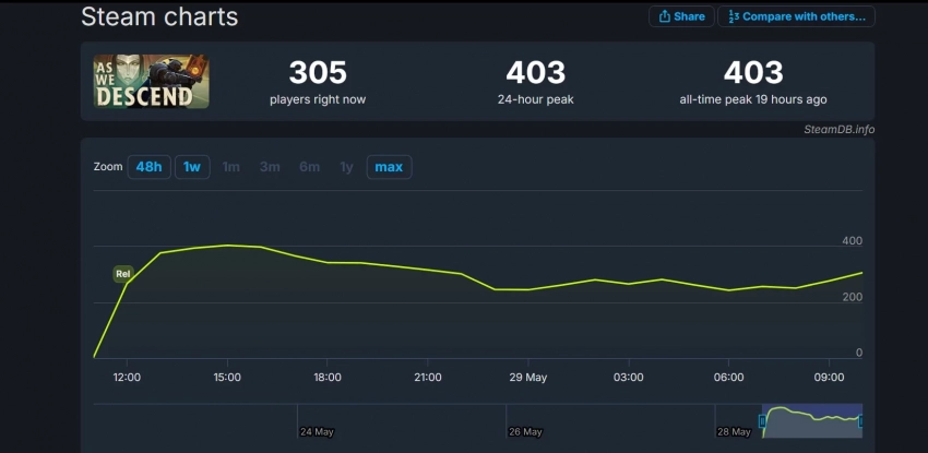 Что касается пикового онлайна в Steam, то вскоре после релиза он составил 403 человека. Хотя в момент написания новости в игре находится 305 человек, поэтому не исключено, что ближе к вечеру или на выходных собственный рекорд пикового онлайна будет побит.