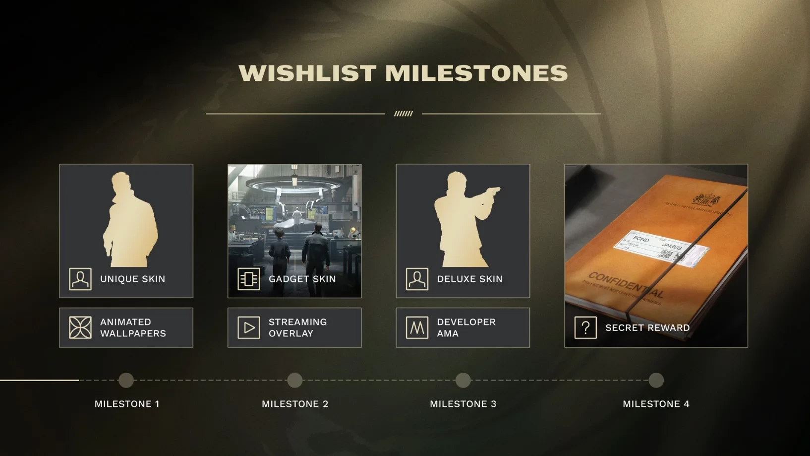 • Цель 3 — Deluxe-скин для Джеймса Бонда и возможность задать свои вопросы разработчикам;