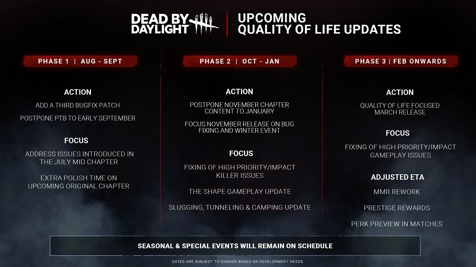 Изменений в запуске сезонных и особых событий нет.