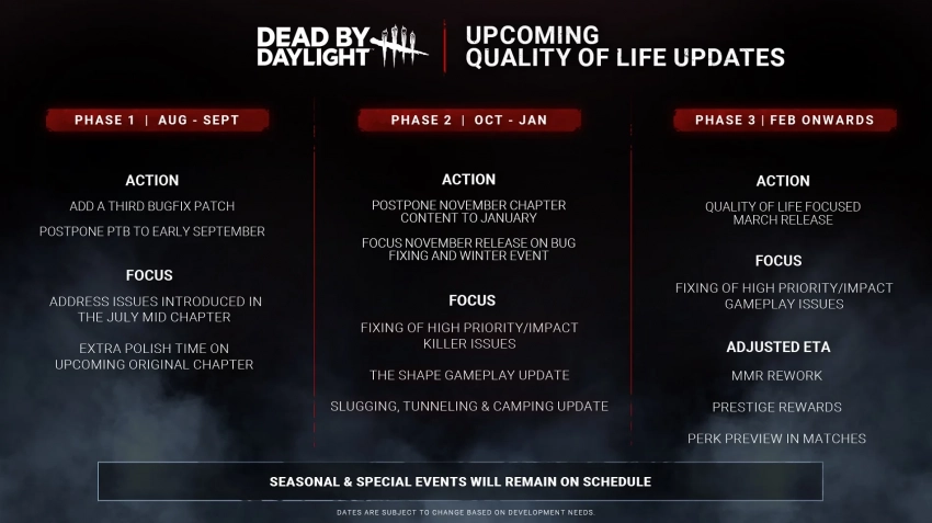 В марте 2026 года для Dead by Daylight планировали выпустить главу с новыми картой и Выжившим, но от последнего теперь могут отказаться, чтобы сэкономить время и ресурсы (на создании перков).