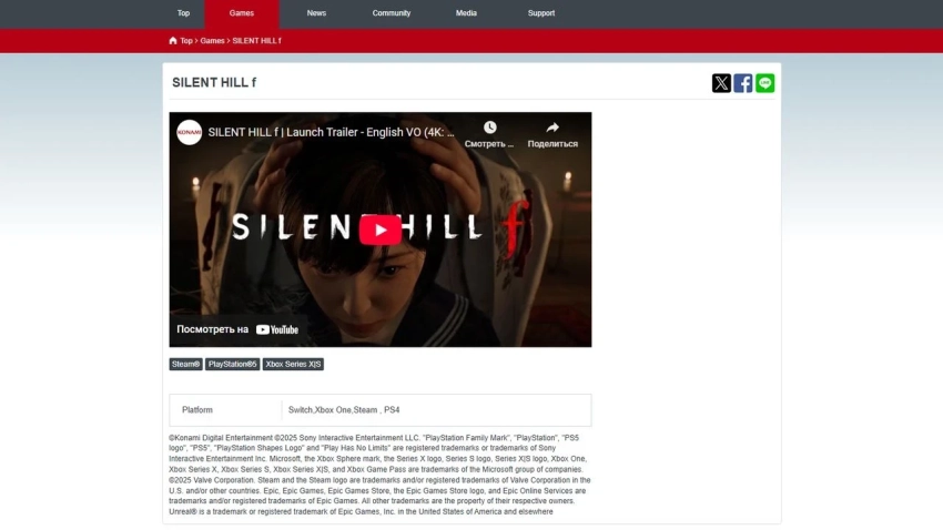 Обложка: скриншот Silent Hill fИздание Insider Gaming обратило внимание на страничку Silent Hill f на официальном сайте Konami. Под релизным трейлером упоминаются PC, PS5 и Xbox Series, на которых вышел хоррор. А ниже в разделе платформы значатся PS4, Xbox One и Switch.