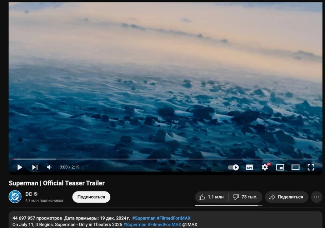 Ранее Джеймс Ганн рассказал, что тизер «Супермена» собрал на разных площадках 250 млн просмотров за 24 часа с релиза и побил рекорды DC и Warner Bros.