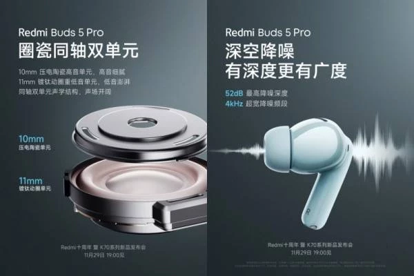 Беспроводные наушники Redmi Buds 5 Pro, в свою очередь, будут представлены в чёрном, белом и синем вариантах исполнения. Они будут оснащены системой активного шумоподавления, фильтрующей звуки громкостью до 52 дБА. В состав наушников Redmi Buds 5 Pro войдут 10-мм динамические драйверы с керамическим покрытием и 11-мм низкочастотные динамиками с титановым покрытием.