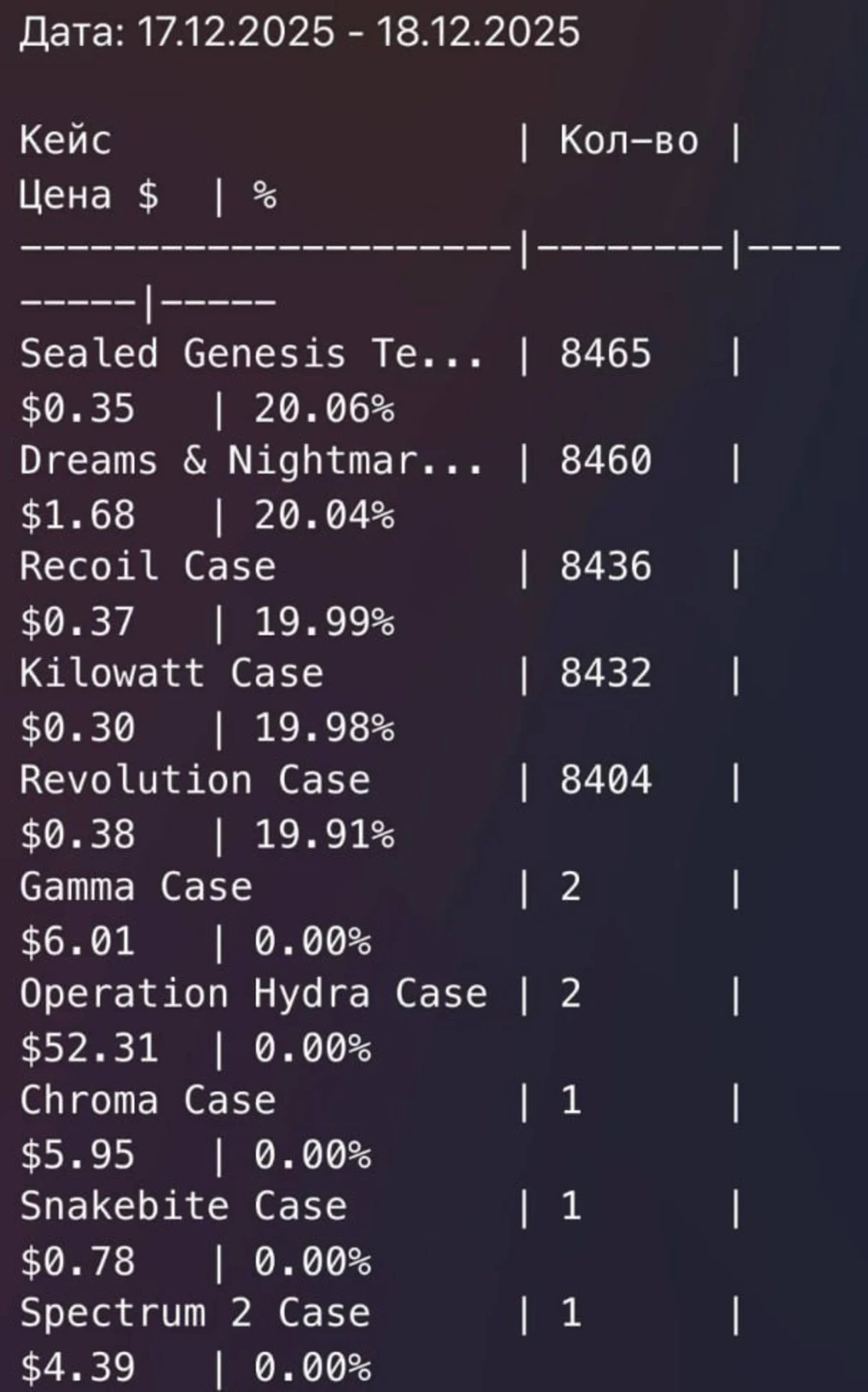 • Snakebite Case: рост цены составил 22%.