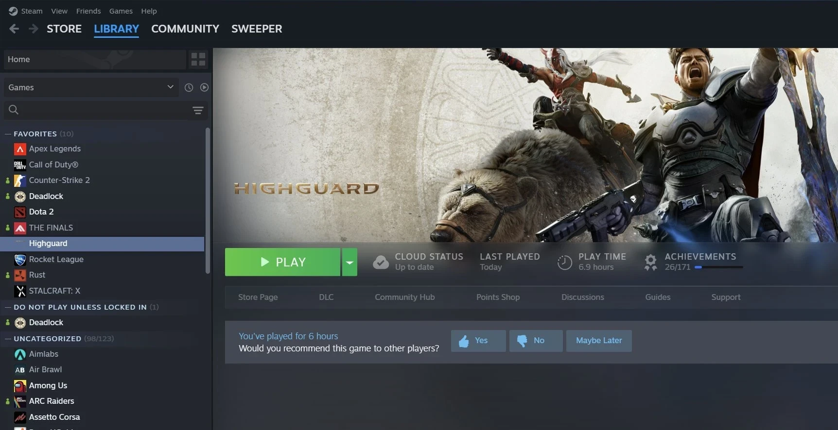 А вот ещё одна мини-находка с полей соцсетей: пользователь под ником minesweeper утверждает, что он поиграл в Highguard, и ему… очень не понравилось. В доказательство он приложил скриншот библиотеки в Steam (воспринимаем его со здоровой долей скептицизма).