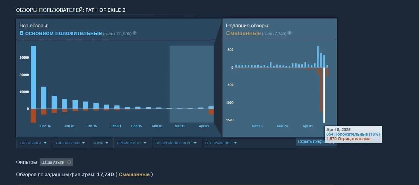 Grinding Gear Games попыталась исправить часть проблем баланса в свежем хотфиксе, но баланс в свежих отзывах Steam это пока не изменило.