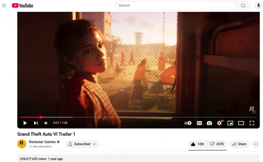 Напомним, что дебютный трейлер GTA 6 за всё время собрал более 254 млн просмотров и более 12 млн лайков.