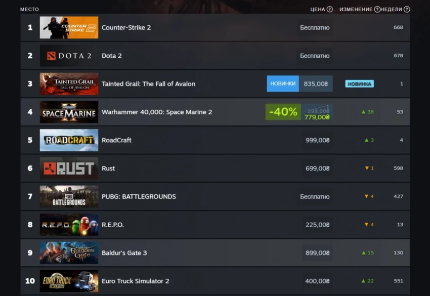 Другим важным новшеством стало появление в десятке Elden Ring Nightreign. Релиз игры состоится 30 мая, и разработчики уже выпустили трейлер, посвящённый этому событию. В топ чарта также вернулся симулятор RoadCraft, который на прошлой неделе покорил российский чарт. А Clair Obscur: Expedition 33 уже близка к тому, чтобы покинуть топ чарта, но и так её продажи удивили создателей.